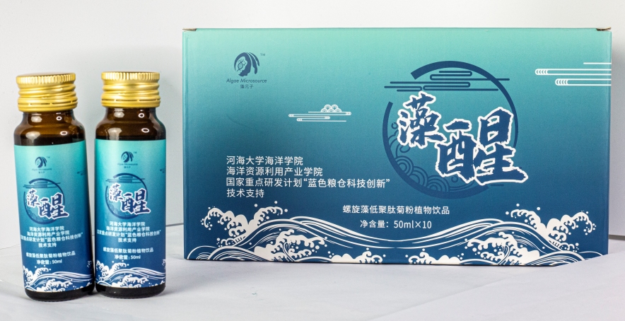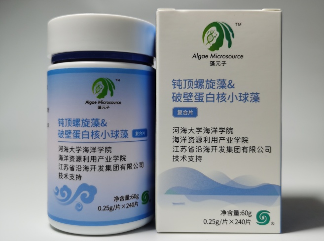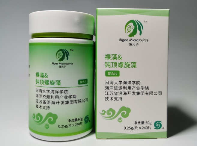 为高质量按时完成国家重点研发计划“蓝色粮仓科技创新”重点专项“黄渤海滩涂生态农牧化与三产融合模式示范”项目课题“滩涂生态农牧场特色生物资源产品和生物制品及示范”(课题编号:2020YFD0900704),研究开发了“钝顶螺旋藻粉&蛋白核小球藻粉”复合片,体外抗肿瘤活性测试表明:混合片提取物对人结肠癌细胞HCT116的抑制率比单独的钝顶螺旋藻粉、蛋白核小球藻粉提取物分别高出12.7%、8.9%,对肝癌细胞HepG2的抑制率比单独的钝顶螺旋藻粉、蛋白核小球藻粉提取物分别高出17.4%、28.1%。开发了“裸藻&钝顶螺旋藻”复合片,混合片提取物对人结肠癌细胞HCT116的抑制率比单独的钝顶螺旋藻粉、裸藻粉提取物分别高出7.3%、17.2%;对肝癌细胞HepG2的抑制率比单独的钝顶螺旋藻粉、蛋白核小球藻粉提取物分别高出7.3%、24%。两款产品(专利申请号:202210244327.8)已推向市场,并取得了良好的社会评价和经济效益。